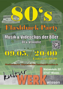 Das Kulturwerk Wissen verwandelt sich in eine Zeitmaschine: Mit der „80’s Flashback“-Party erwartet Besucherinnen und Besucher ein mitreißender Abend voller musikalischer Erinnerungen, ikonischer Videoclips und…