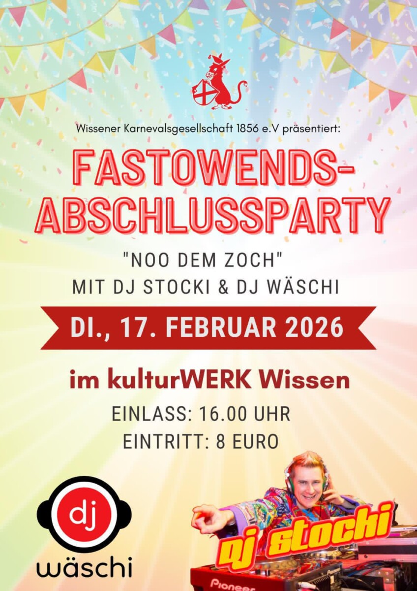 Alle sind herzlich eingeladen, bei guter Stimmung und musikalischer Unterstützung von DJ Stocki & DJ Wäschi mit uns „noo dem Zoch“ weiter zu feiern!
