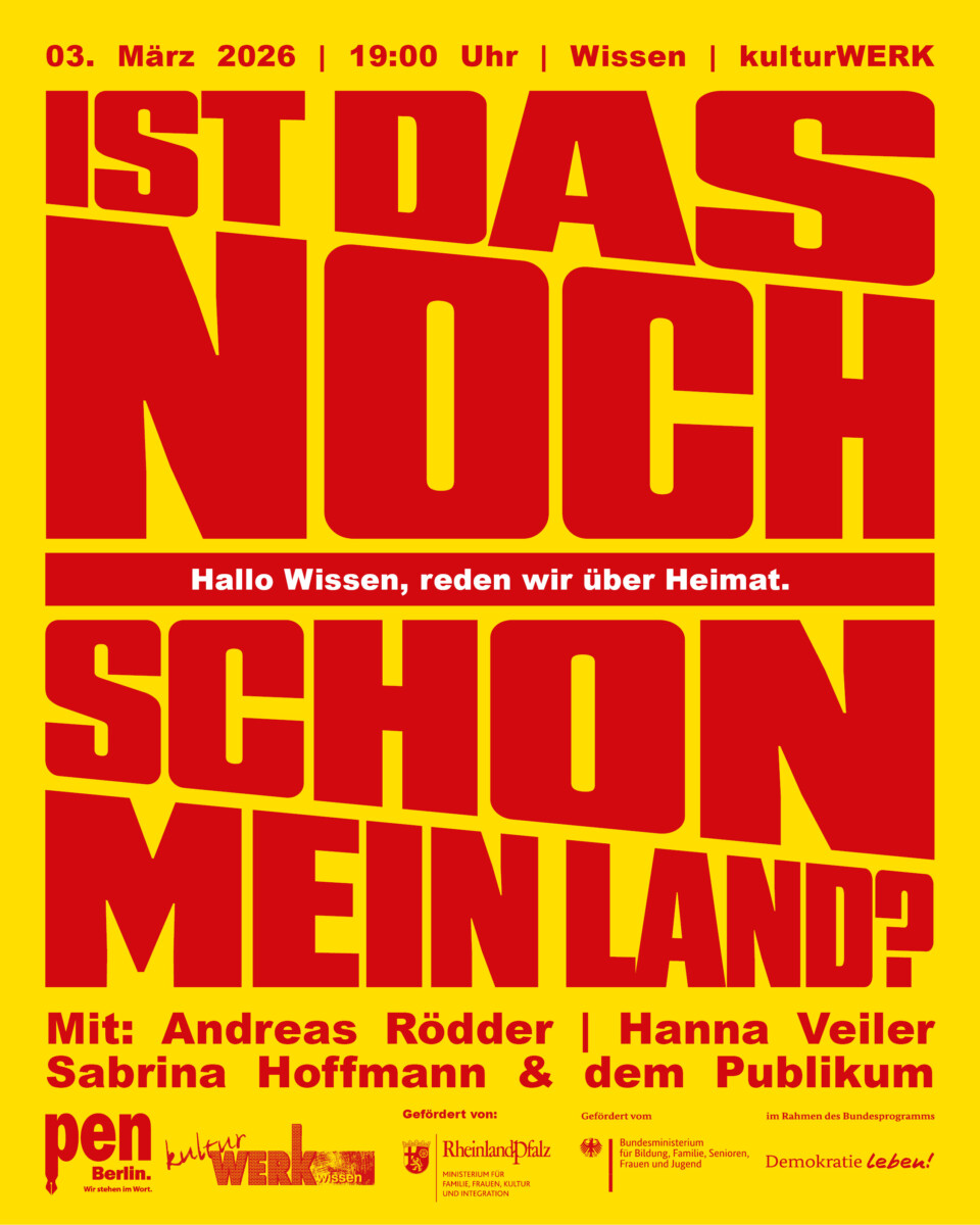 Am 27. Februar diskutieren in Ludwigshafen am Rhein unter dem Titel »Ist das noch|schon mein Land?« PEN-Berlin-Sprecher Deniz Yücel und die ehemalige Bundesfamilienministerin Kristina Schröder – miteinander und mit dem Publikum.