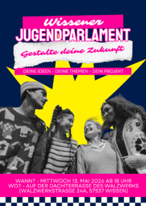 Herzlich Willkommen, liebe Teens/Jugendliche/junge Erwachsene, zur Auftakt-Veranstaltung! An diesem Abend soll der Startschuss fallen für das Jugendparlament (JuPa) der Verbandsgemeinde Wissen. Es wartet ein spannendes…